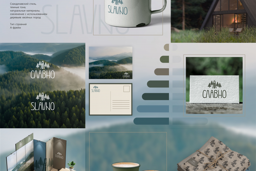 Работа с согласованным логотипом: подбор цветовой палитры, разработка паттерна, подбор дополнительных шрифтов и визуализация бренда.