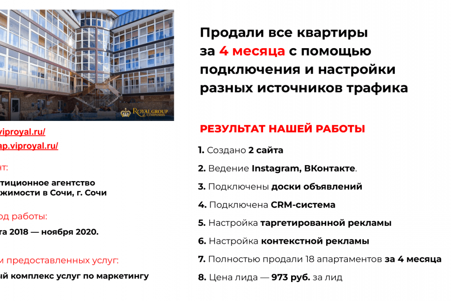 - Гарантируем прозрачность – полный доступ к рекламным кабинетам и метрикам