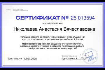 Буду рада обсудить возможные вакансии менеджера категорий на площадке Wildberries и готова лично продемонстрировать эффективность своей работы!