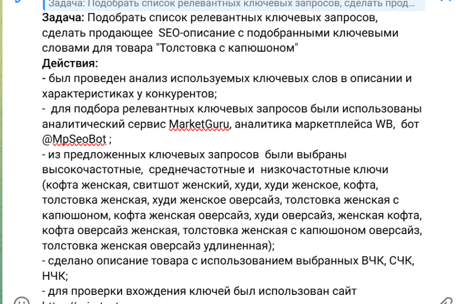 анализ ниши → аудит карточки → оптимизация → рост конверсии и продаж.