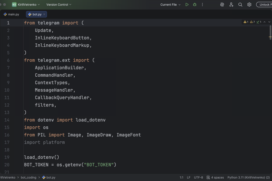 Могу написать простого тг бота, допустим бота эхо или бота с небольшим функционалом. Работаю с библиотекой telegram.