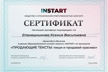 Имею высшее образование. В данный момент продолжаю проходить курсы по фрилансу. Уже имею сертификат копирайтера, контент-менеджера.