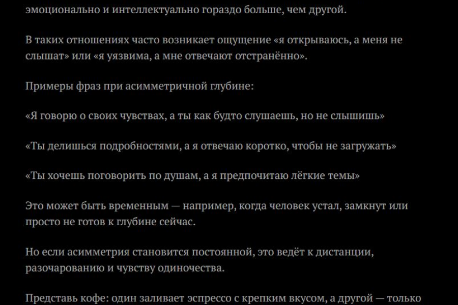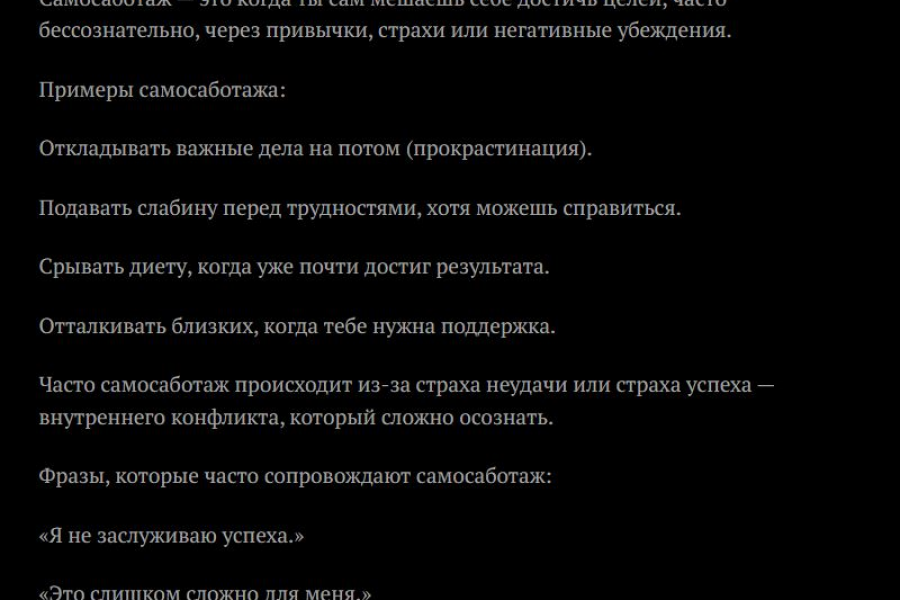 Предлагаю профессиональное создание уникальных и информативных психологических материалов. Каждая статья тщательно прорабатывается с учётом актуальных исследований и практических рекомендаций, написана понятным и доступным языком. Идеально подойдёт для блогов, сайтов и соцсетей, желающих донести полезную информацию о психологии и самопомощи.