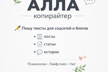 Пишу тёплые, живые и грамотные тексты на темы психологии, лайфстайла, уюта, саморазвития. Помогаю блогерам, экспертам и небольшим компаниям находить отклик у аудитории.