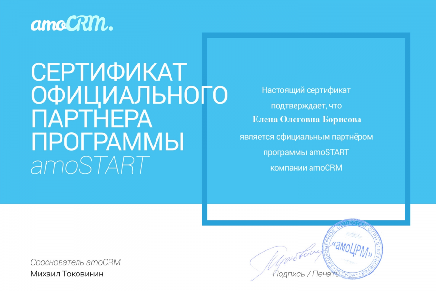 Предлагаю профессиональную интеграцию и настройку AmoCRM в ваш бизнес.
