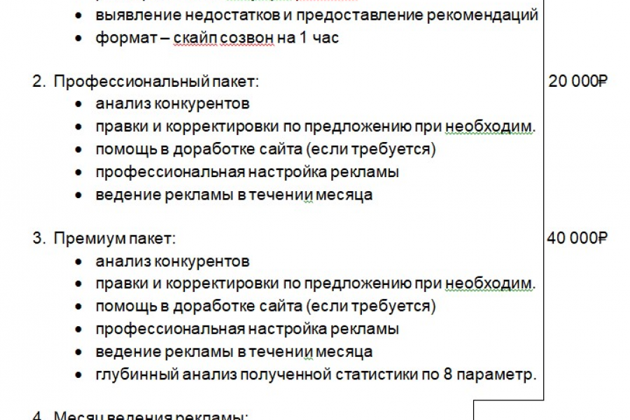 • ведение рекламы в течении месяца
