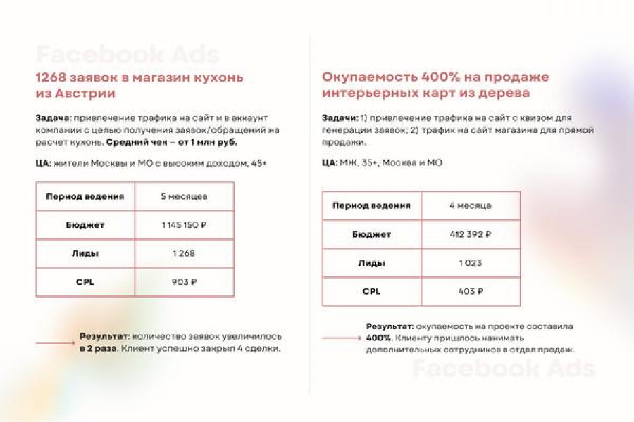 - разработаем не менее 5 рекламных связок (картинка/видео + текст) для первого запуска с разными триггерами*
