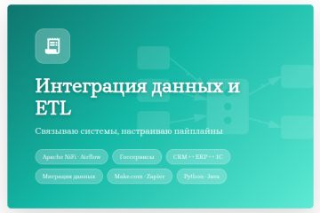Мой стек: Apache NiFi, Airflow, Talend, Pentaho, n8n, Make.com, Zapier, Power Automate, Airbyte, Fivetran, Stitch, MuleSoft Anypoint, Boomi, Oracle Data Integrator, Python/Java, REST/SOAP API, SQL, Kafka, RabbitMQ.