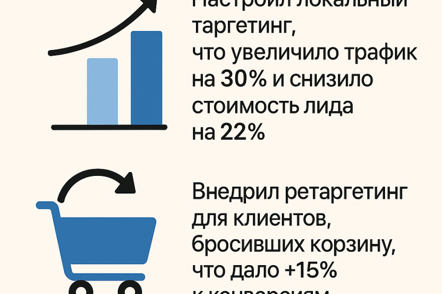 Полностью готовую контекстную рекламу в Яндексе, которая будет показываться на поиске, других сайтах и картах.