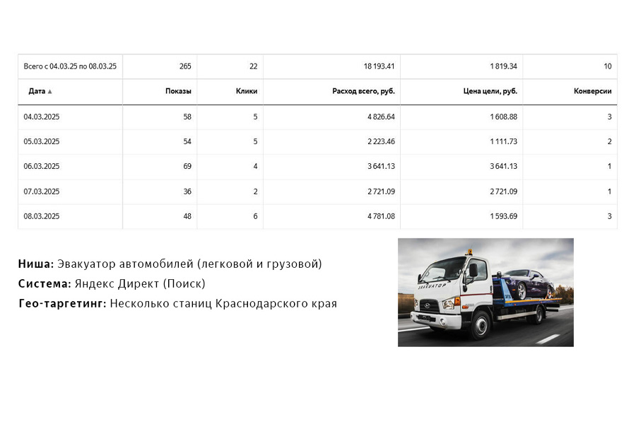 Настрою Яндекс Директ (Поиск) для Эвакуатора автомобилей.