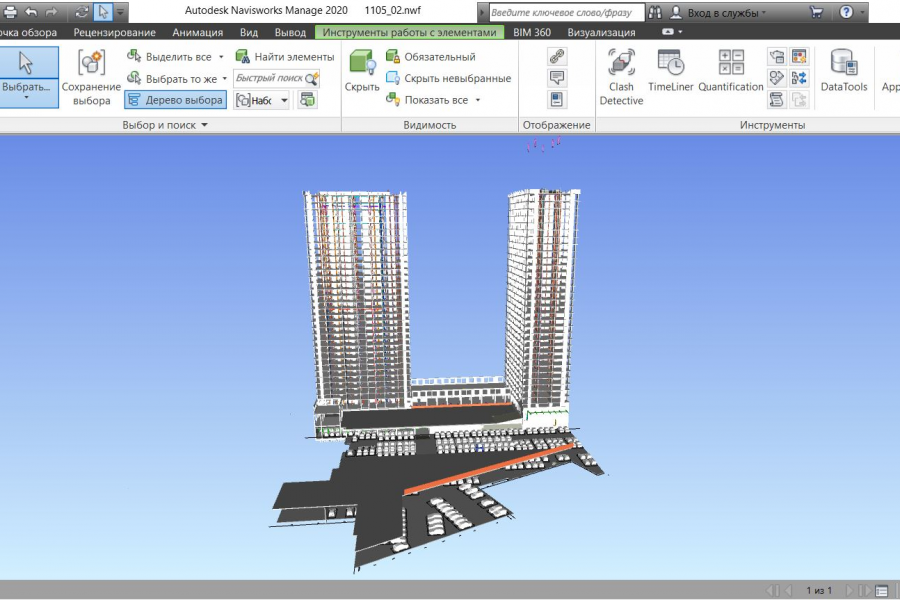 Настройка в NavisWorks инженерных сетей с разработанной архитектурой здания. Составления отчета о коллизиях с системами ИОС.