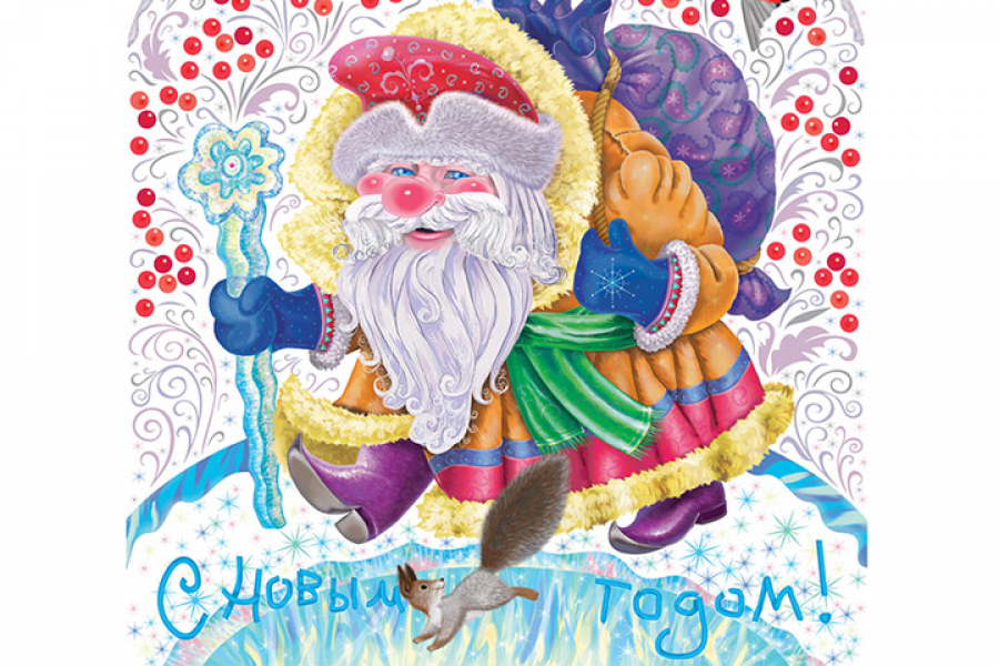 Создание уникальной иллюстрации с новогодним сюжетом для упаковки и прочей печатной продукции с учётом стандартных требований для печати.