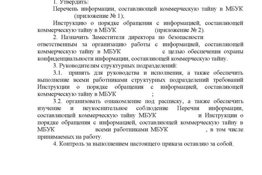 1. Проведение Skype-встречи для определения целей и желаемых результатов от внедрения Положения о коммерческой тайне 2. Разработка Положения 3. Консультации по внедрению (бесплатно)