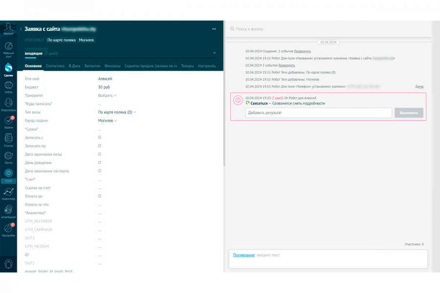 Настройка передачи данных из форм вашего сайта в amoCRM по API. Создание приложения, написание кода на PHP для авторизации и передачи данных по API согласно официальной документации.