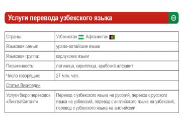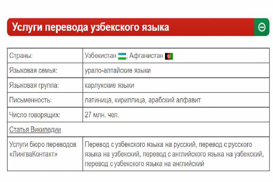 Переводы документов и текстов любой сложности с узбекского языка на русский или с русского на узбекский вы всегда можете заказать в Бюро переводов ЛингваКонтакт.