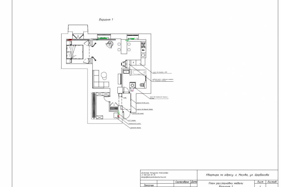 • План демонтажа и возведения перегородок с указанием материалов и площадей;