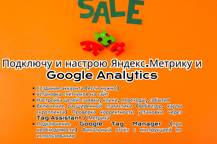 Я профессионально настрою Яндекс.Метрику и Google Analytics, чтобы вы могли анализировать трафик, конверсии и эффективность продвижения. Гарантирую чистые, понятные и полезные данные.