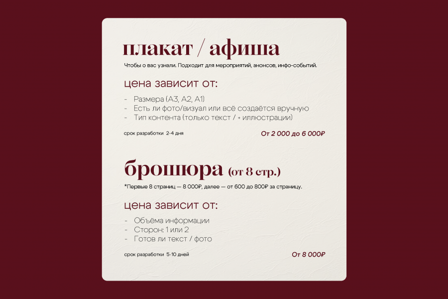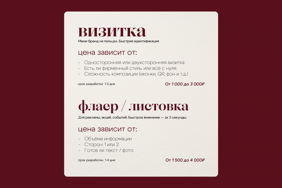 Полиграфия под ключ — стильные и продуманные макеты, которые выделят ваш бренд на любых носителях.