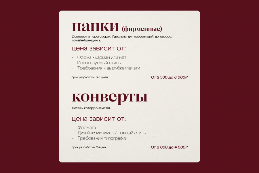 Полиграфия под ключ — стильные и продуманные макеты, которые выделят ваш бренд на любых носителях.