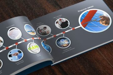 мы разрабатываем идею оформления каталога в целом: делаем 2 варианта оформления на примере обложки и внутреннего разворота на выбор.