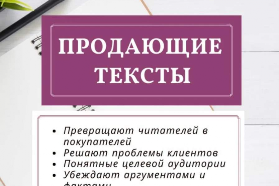 Напишу для вас продающие текста, они будут продавать за вас или ваших менеджеров.