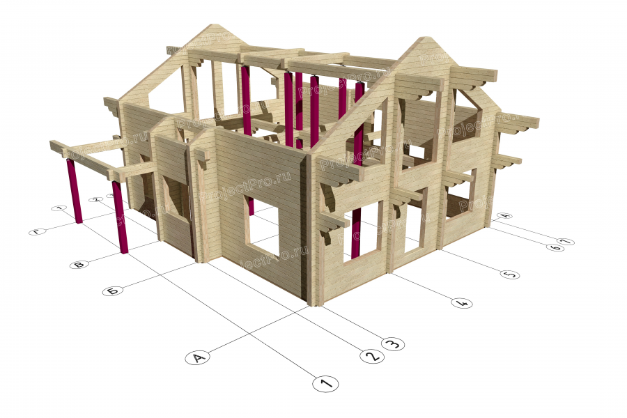 Профессиональный рабочий проект для домов и других строений из профилированного или клееного бруса, бревна, D-профиля, лафета.