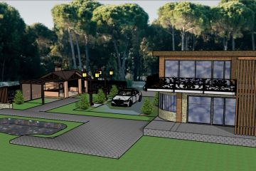 Эскизный проект (3D виды строения, поэтажные планы, план кровли, длины скатов, фасады, разрезы, план проемов).
