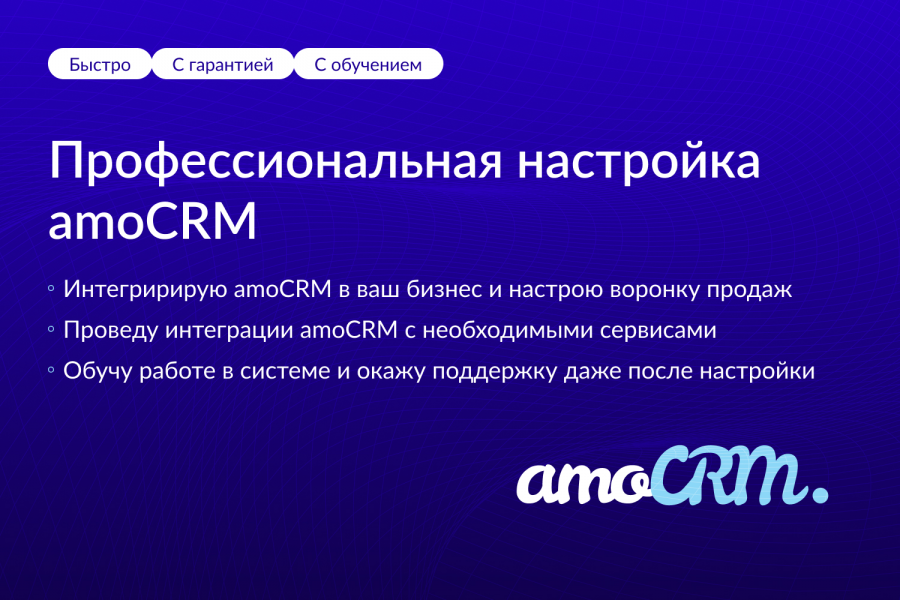 Настрою/доработаю/внедрю/интегрирую amoCRM в Вашу компанию или проект.