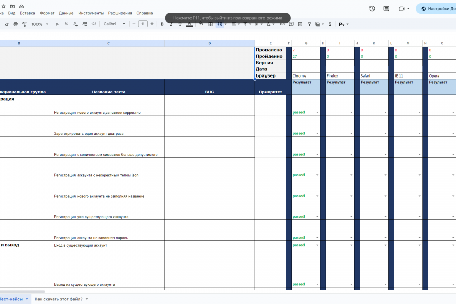 Протестирую ваш проект в удобной для вас программе, создам полную таблицу с тест-кейсами или же чек-лист и оформлю все баг-репорты. В описании указаны стоимость и время тестирования только на одну часть сайта, к примеру поиск, корректная работа БД, оформление заказа. Примеры работ (портфолио) выложил в профиль. Так же время указанно с запасом в один день, по этому скорее всего сделаю за 2 дня. Пример чек листа Google docs на обложке.