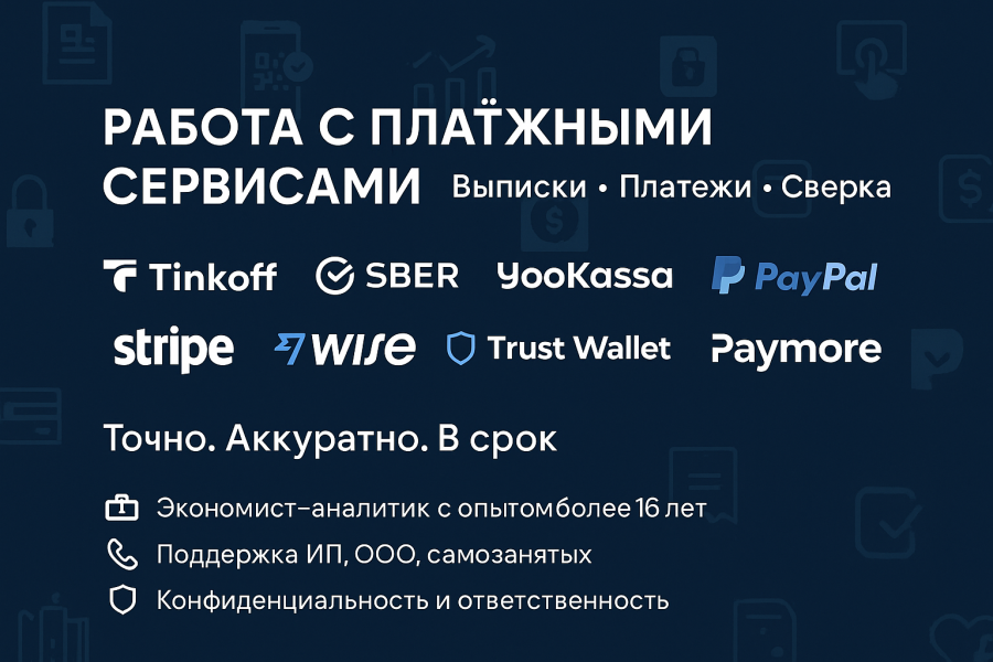 Помогу настроить и вести работу с платёжными сервисами:
