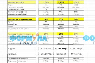 - Построим 3 варианта плановой Воронки Продаж через Директ,