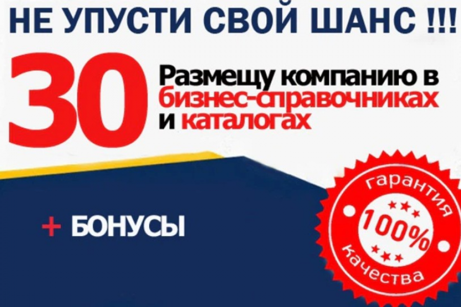 Размещаю вручную в 30 ведущих бизнес-справочниках, городских справочниках и в каталогах компаний.