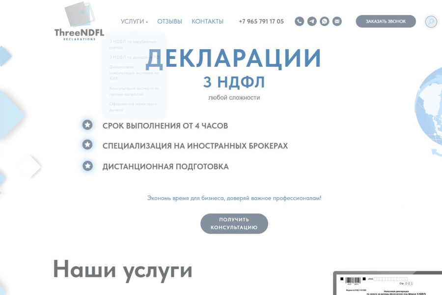 Несколько страниц и форм для приема заявок;