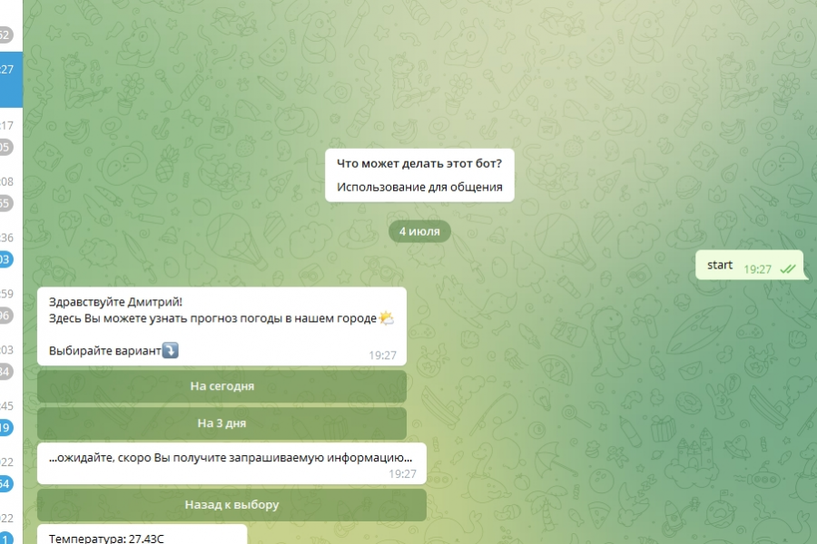 Вот список нескольких функций, которые я могу реализовать в чат-боте.