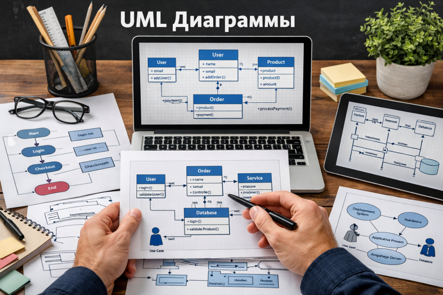 Диаграмма классов (Class Diagram) – спроектирую структуру данных, их атрибуты и связи (для сложных систем).