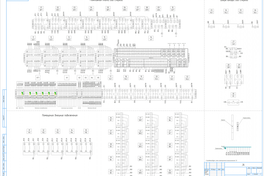 Монтажные схемы шкафов/щитов (расположение аппаратуры, разводка проводов).