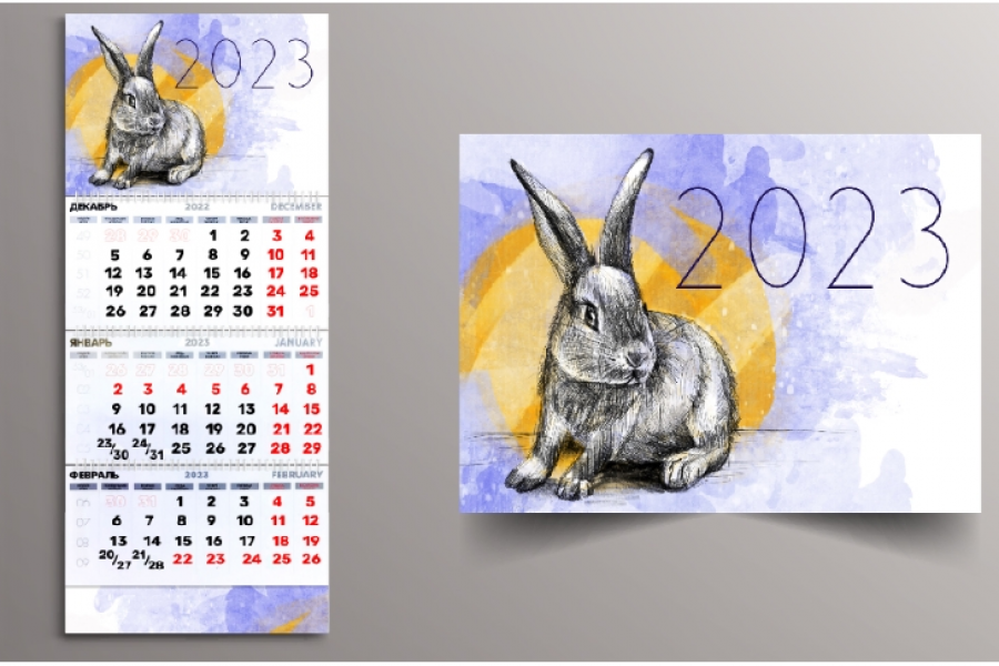 Разработка иллюстрации для титульного листа календаря. На данном мокапе представлен квартальный календарь. Возможно использование графических стоковых материалов и индивидуальной отрисовки иллюстрации на графическом планшете. Работа происходит по ТЗ