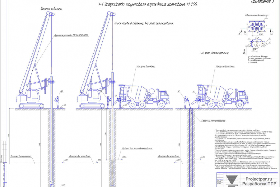 Большое внимание уделяется графической части ППР, которая представляет собой схемы производства работ с указанием процесса выполнения различных строительно-монтажных работ, с обязательной привязкой к объекту строительства. Строительный генеральный план оформляем в соответствии с СП 48.13330.2019 с указанием ограждения строительной площадки, схемы размещения строительного городка, схемы организации дорожного движения, схемы размещения складских площадей и помещений, схемы привязки основных средств механизации и указанием опасных производственных зон и зон влияния строительных машин.