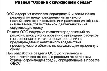 - Разработка раздела «Охрана окружающей среды» (ООС) в составе проектной документации предусмотрена ФЗ «Об охране окружающей среды» от 10.01.02 № 7-ФЗ