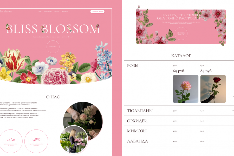3. Дизайн сайта. По прототипу выполняется дизайн страницы, заполнение контентом и цветами, а также составление адаптивов (ПК, планшет, телефон)