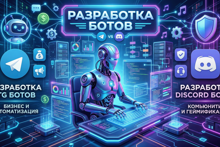 Разработка умных ботов для Telegram и Discord под ключ.