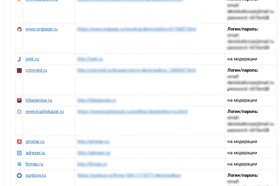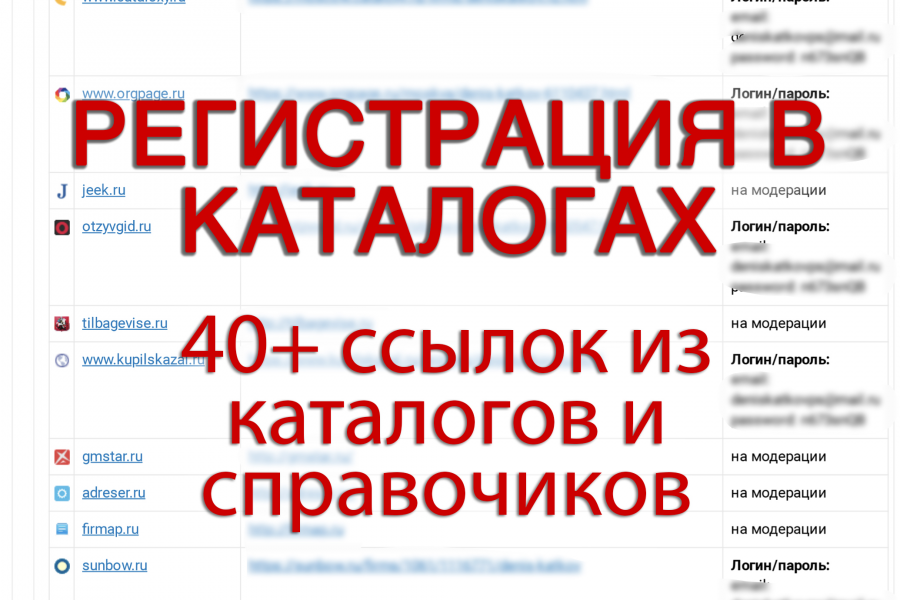 По завершению работы пришлю отчет с доступами к вашим профилям в каталогах и справочниках.