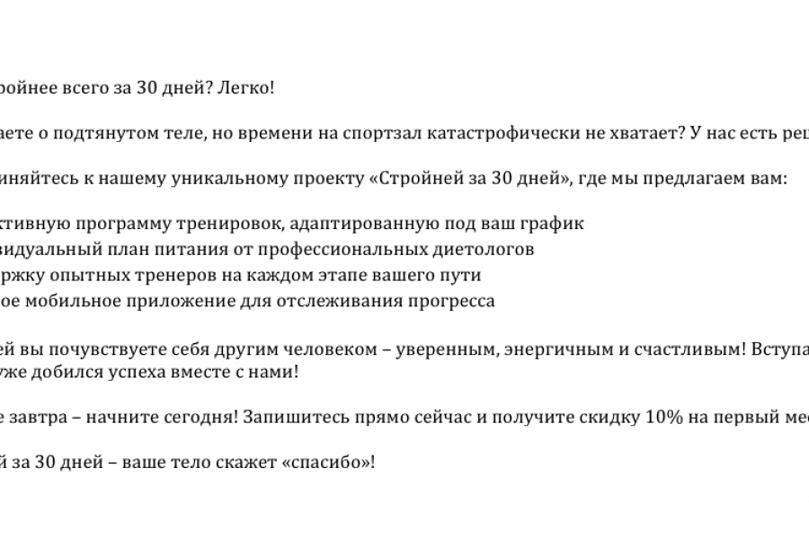 Написать рекламный текст про программу «Стать стройнее за 30 дней»