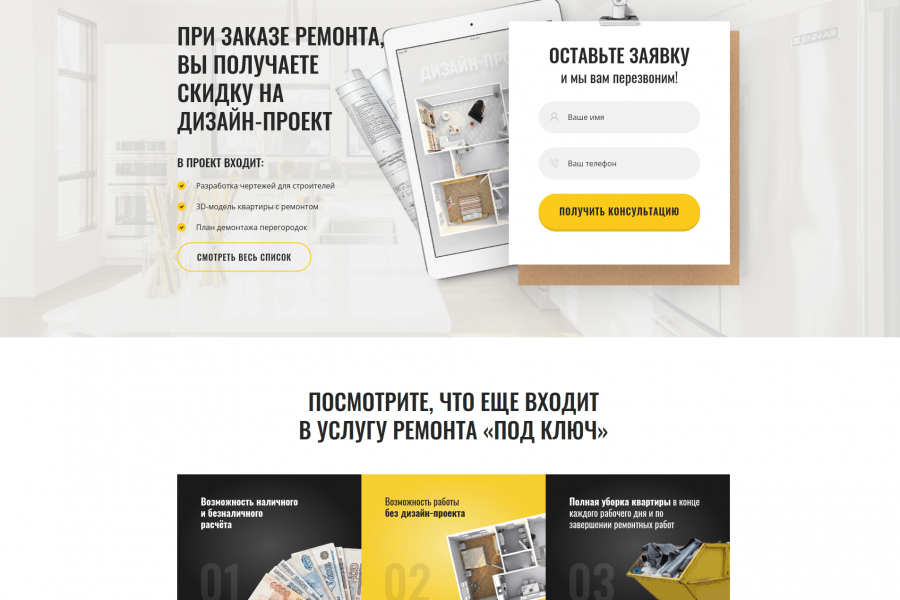 Это очень хороший вариант, если Вы решили быстро запустить рекламу своей строительной или ремонтной организации - берите данный готовый лендинг.