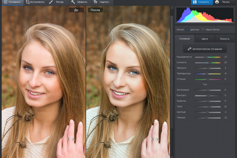 Отретуширую фото, добавлю красок, наложу фильтр, уберу фоны или лишние детали. Работаю с различными фотографиями в уже готовом виде.