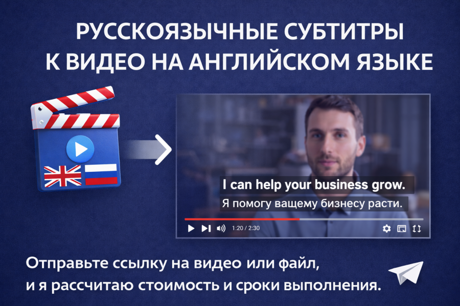 Создаю точные и грамотные русскоязычные субтитры для видео на английском языке. Перевожу речь с сохранением смысла, интонации и контекста, чтобы текст был понятным и естественным для русскоязычной аудитории.