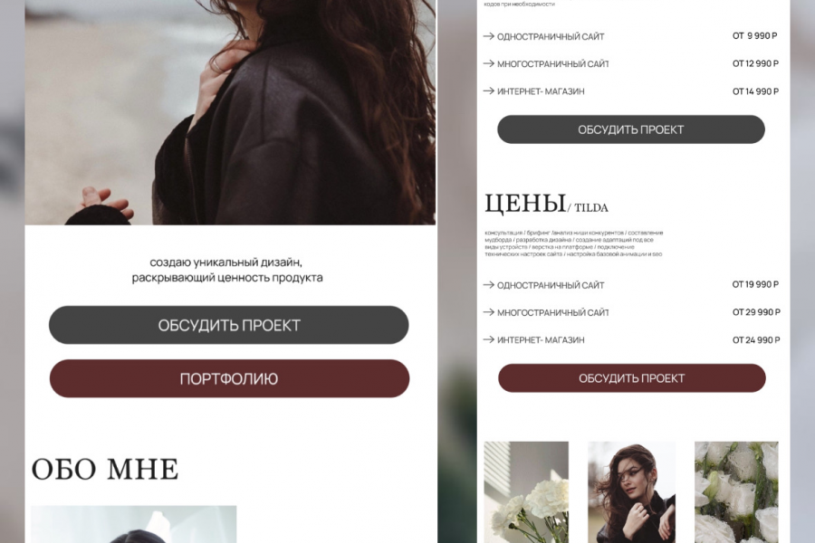 По итогу вы получаете готовый сайт на таплинке с разработанными под Вас дизайном и легкой анимацией