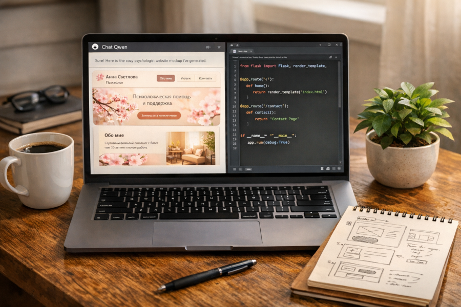 ✅ Дизайн, созданный с помощью ИИ (Qwen, аналоги ChatGPT) – современные, уникальные макеты без шаблонной скуки.