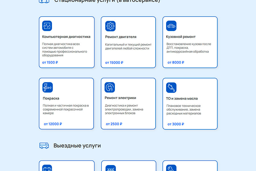 Шаблон лендинга на Tilda для автосервиса.
