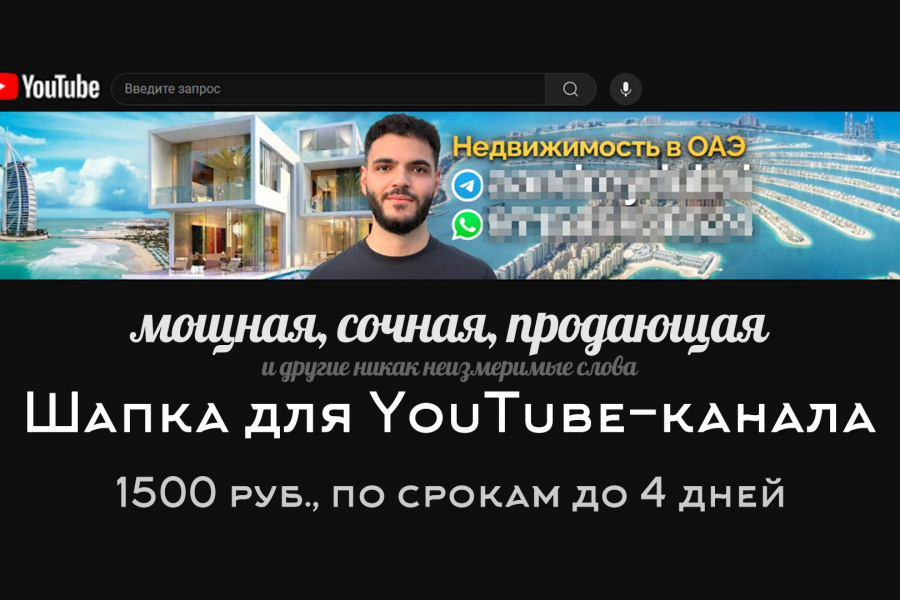 Здравствуйте, я делаю обложки к видео (превью) и шапки для ютуба уже больше года.